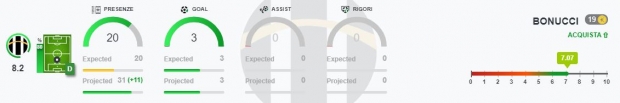 Bonucci: secondo l’Allenatore in Seconda, l’esclusivo assistente virtuale fantacalcistico di FCO che analizza migliaia di dati statistici, si tratta di un profilo assolutamente da acquistare, in virtù di un rendimento più che buono e di una discreta propensione alla rete. Costa 19 Kapitals e può vantare un Fanta Factor pari a 7.07. Occhio: tende ad esaltarsi nelle grandi sfide. Giocare contro gli ex compagni rossoneri potrebbe essere un’occasione ghiotta per trovare nuovamente la via della rete.