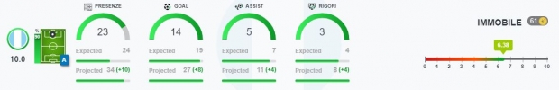 Immobile: è in un periodo magico, visto che riesce a trasformare in oro tutto ciò che tocca. I compagni lo sanno e stanno riuscendo a servirlo con precisione e continuità. In classifica marcatori può già vantare un vantaggio di ben 4 reti sul secondo (Lukaku) e il prossimo impegno casalingo potrebbe essere fondamentale per una fuga.