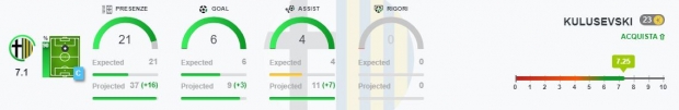 Kulusevski: va acquistato, sia per la qualità delle prestazioni, sia perché è listato come centrocampista puro. Questo potrebbe consentire alla vostra mediana di arricchirsi di un talento cristallino, capace di arrivare con continuità al tiro o a rifinire l’azione, con precisi assist intenzionali o passaggi decisivi.
