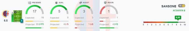 Sansone: ha già trovato la via della rete 4 volte (3 su rigore). Da lui, però, ci si aspetta tanto anche sul fronte della rifinitura. Potrebbe essere una buona idea concedergli fiducia contro il Lecce, sfruttando la sua enorme velocità in ripartenza ed una fase difensiva non proprio ottimale per i giallorossi di Liverani.