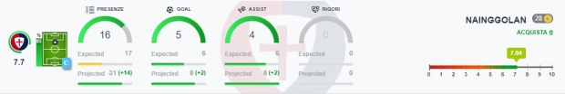 Nainggolan: è tra i nomi caldamente suggeriti dall'Allenatore in Seconda, lo speciale assistente virtuale che mastica migliaia di dati, restituendo pareri su chi comprare, chi cedere e chi schierare in campo da titolare. Costa 28 Kapitals, non pochi, ma l’investimento è già stato sicuramente positivo per chi ha creduto nelle qualità del belga a inizio stagione.