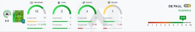 De Paul: lo abbiamo già suggerito nella scorsa giornata in questa rubrica e il talento argentino ha ripagato la fiducia con un goal decisivo a Lecce. È il faro della squadra friulana, colui in grado di trovare linee di passaggio inaccessibili per altri giocatori. Il consiglio, valido soprattutto per chi gioca nella modalità tutti contro tutti, è di effettuare su di lui un investimento, prima che il prezzo cresca ulteriormente.