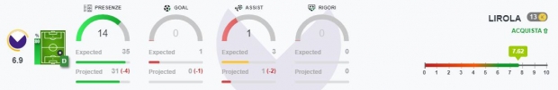 Lirola: è tra i difensori consigliati dall'Allenatore in Seconda, lo speciale assistente virtuale che mastica migliaia di dati per restituire consigli fantacalcistici su chi comprare, chi vendere e chi schierare. Al San Paolo nell’ultimo turno si è messo in evidenza con un passaggio decisivo (assist per chi utilizza quelli Gazzetta) e tante altre buone giocate.