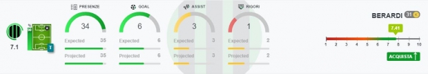 E passiamo all’analisi della trequarti campo, che vede la presenza di tre profili di assoluto talento. Il primo è Berardi, che si è rivalutato alla grande in questo inizio campionato grazie ai 5 goal realizzati ed una media voto oggettivo monstre (7.33). Affronterà la Spal, che per ora non ha messo in evidenza una difesa impeccabile. Ha dunque l’occasione per rimpolpare il proprio score ulteriormente.