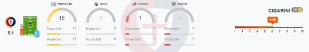 Seconda nomination in mediana per Cigarini. Il centrocampista centrale del Cagliari ha disputato 2 presenze (1 da titolare), ma dovrebbe essere impiegato dal primo minuto contro il Genoa. Ha un costo non elevato (10 Kapitals) ed una media voto oggettivo più che onorevole (6.56). Ha già collezionato un assist da fermo, e la presenza di diversi profili forti fisicamente in rosa, rende plausibile pensare che ne possa fare ancora altri.