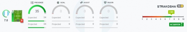 Meno costoso, ma sicuramente capace di garantire buona affidabilità è Strakosha (16) della Lazio. Affronterà in trasferta la Spal, in un match sicuramente non semplice ma neanche impossibile. Per lui 7.03 di FantaFactor, l’esclusivo valore osservabile grazie all’Allenatore in Seconda FCO che indica il rapporto qualità/prezzo in relazione alle prestazioni attese.
